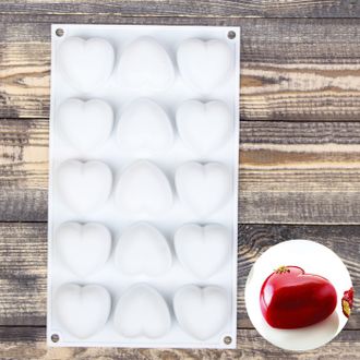 Форма для муссовых десертов и выпечки 29,8×17,3 см «Сердца», 15 ячеек (5×5×3 см), цвет белый